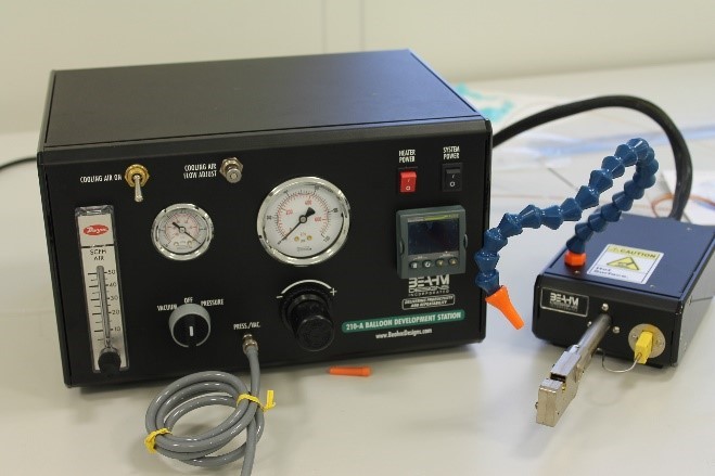 Kateterlerin şekillendirilmesi için kullanilan kalip aparatlarinin kisa surede hava ve elektrik baglantilarinin değiştirilebilecek sekilde tasarlanabilir.Polimer tüpleri zarar vermeden sabitleyebilir, basınçları ayarlanabilir kıskaçları vardır. Sistem PLC’ler (Programlanabilir mantık kontrolü) ile dokunmatik ekran uzerinden kontrol edilmektedir. Uygulanacak güç ve sıcaklık kontrolü sağlanabilmektedir. Isıtıcı koiller su ile kalıplar ise hava ile soğutulabilmektedir. Aynı anda iki tane katater şekillendirilebilmektedir.Distal uç şekillendirme, uç açma, iki farklı sertlikte polimer tüpü birbirine birleştirebilmektedir.