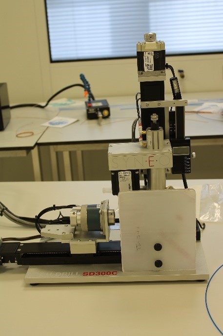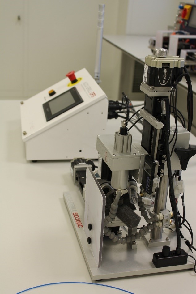 Üç eksen (X, R ve Z ekseni); dikey yönlendirmeli, 1 mm den 9,5 mm çapa kadar delik delinebilir.