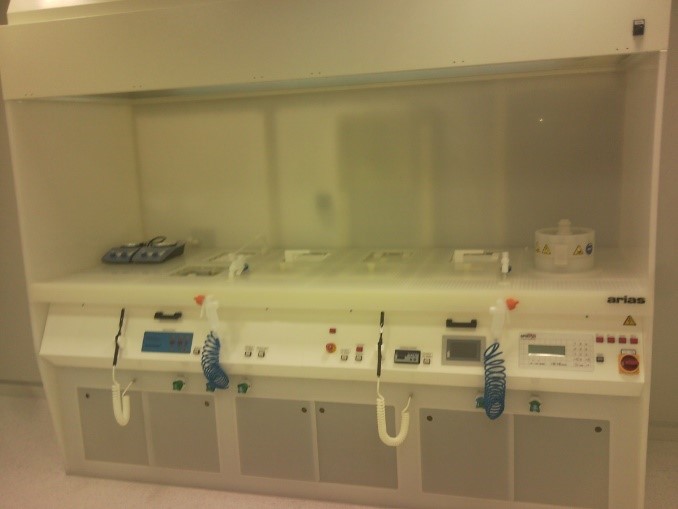 Temizlenen örnekler, sürekli sağlanan DI (deiyonize) su ile durulanır ve azot gazı ile kurulanır. Tezgah üzerinde ayrıca iki adet sıcak yüzey (hot plate) ve bir adet spinner bulunmaktadır.